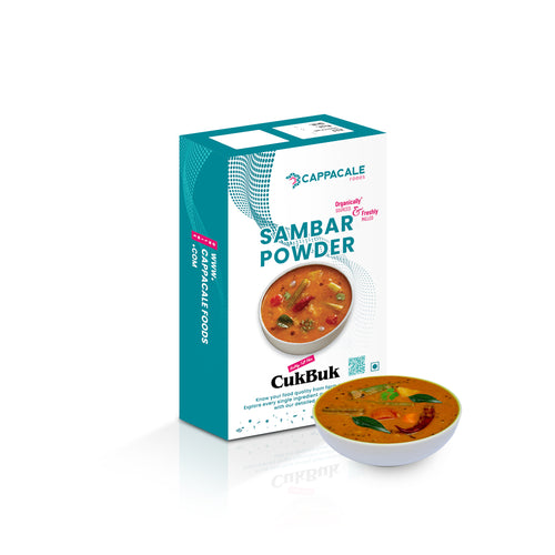 Introducing our authentic Sambar Powder - the secret to creating restaurant-quality South Indian sambar right in your kitchen. Packed with a precise blend of hand-picked spices, our Sambar Powder is your shortcut to the perfect balance of flavors and aromas. Whether you're a seasoned cook or just starting your culinary journey, our Sambar Powder will elevate your dishes to a new level of deliciousness. Try it today and savor the true taste of South India.- Net Weight: 100 grams